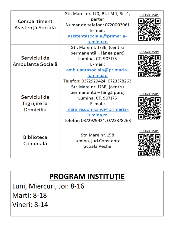 Str. Mare nr. 173E, (centru permanență – lângă parc)