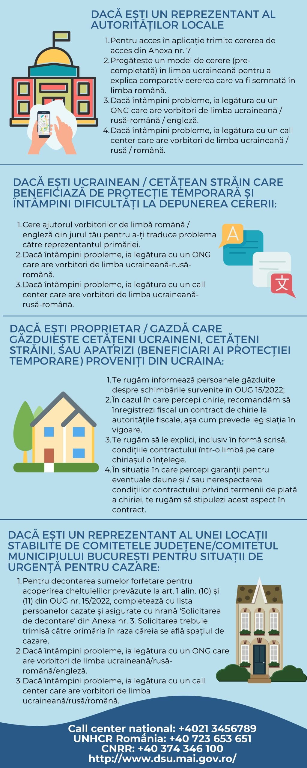 - Vă rugăm să informați persoanele găzduite despre schimbările survenite în OUG 15/2022;