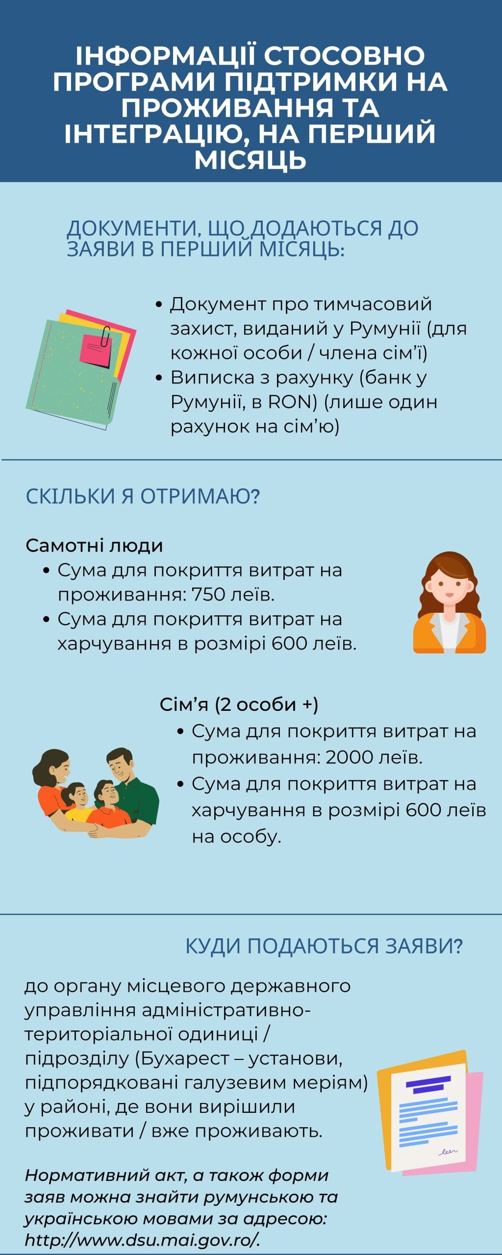 Інформації стосовно програми підтримки на проживання та інтеграцію, на перший місяць